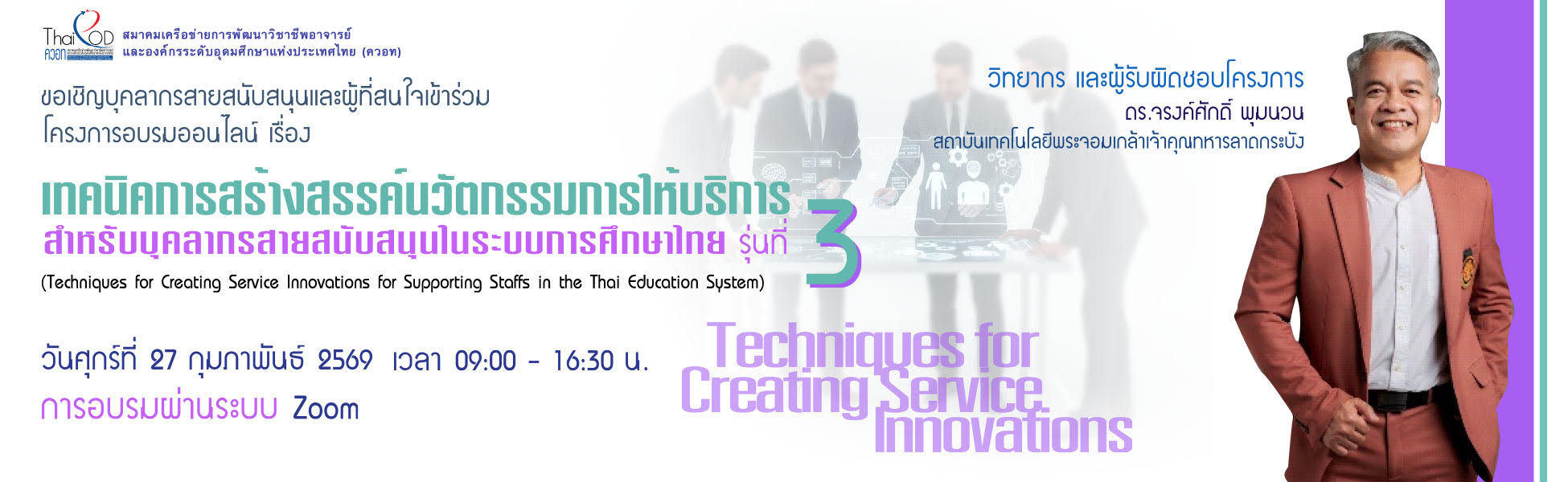 โครงการอบรมออนไลน์ เรื่อง เทคนิคการสร้างสรรค์นวัตกรรมการให้บริการ สำหรับบุคลากรสายสนับสนุนในระบบการศึกษาไทย รุ่นที่ 3 (Techniques for Creating Service Innovations for Supporting Staffs in the Thai Education System)