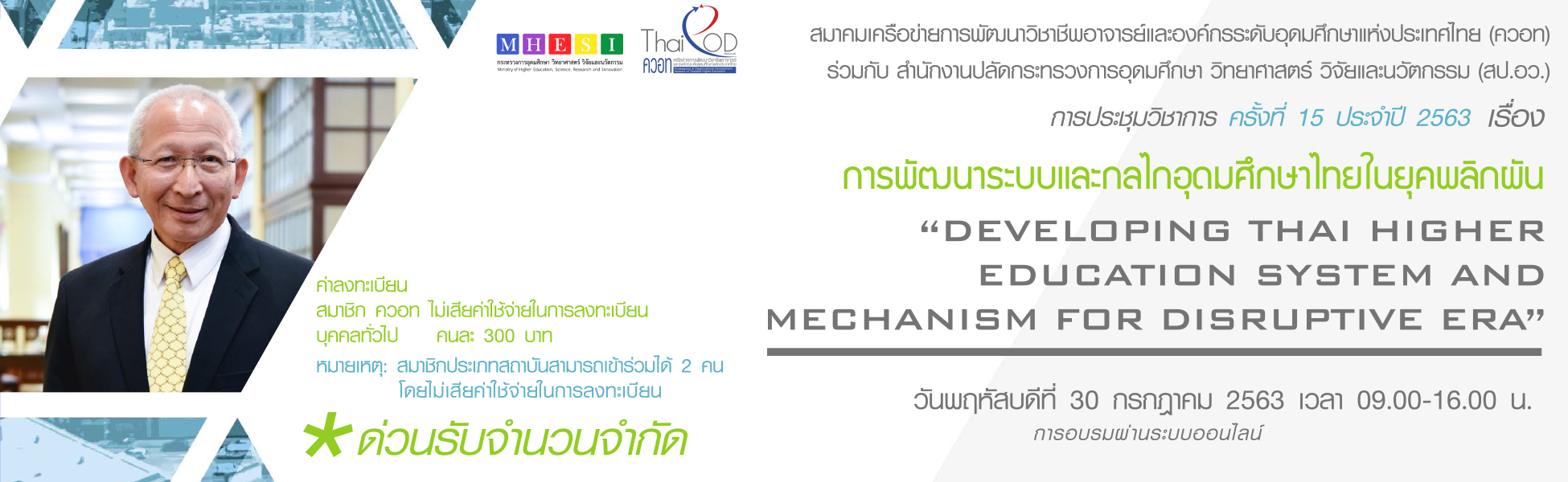 การพัฒนาระบบและกลไกอุดมศึกษาไทยในยุคพลิกผัน "DEVELOPING THAI HIGHER EDUCATION SYSTEM AND MECHANISM FOR DISRUPTIVE ERA"