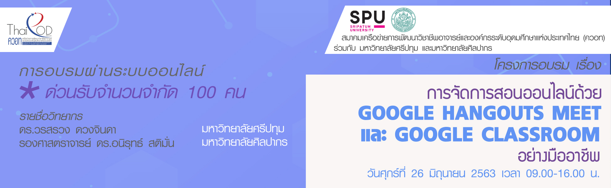 วันที่ 30 กรกฎาคม 2563 เวลา 09.00 - 16.00 น. (การอบรมผ่านระบบออนไลน์)