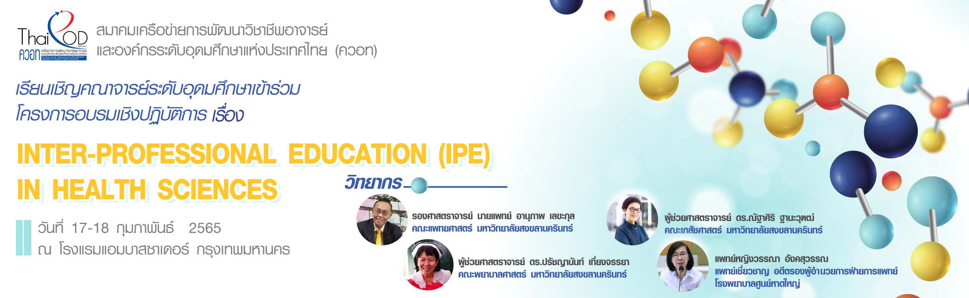 โครงการอบรมเชิงปฏิบัติการ เรื่อง Inter-Professional Education (IPE) In Health Sciences