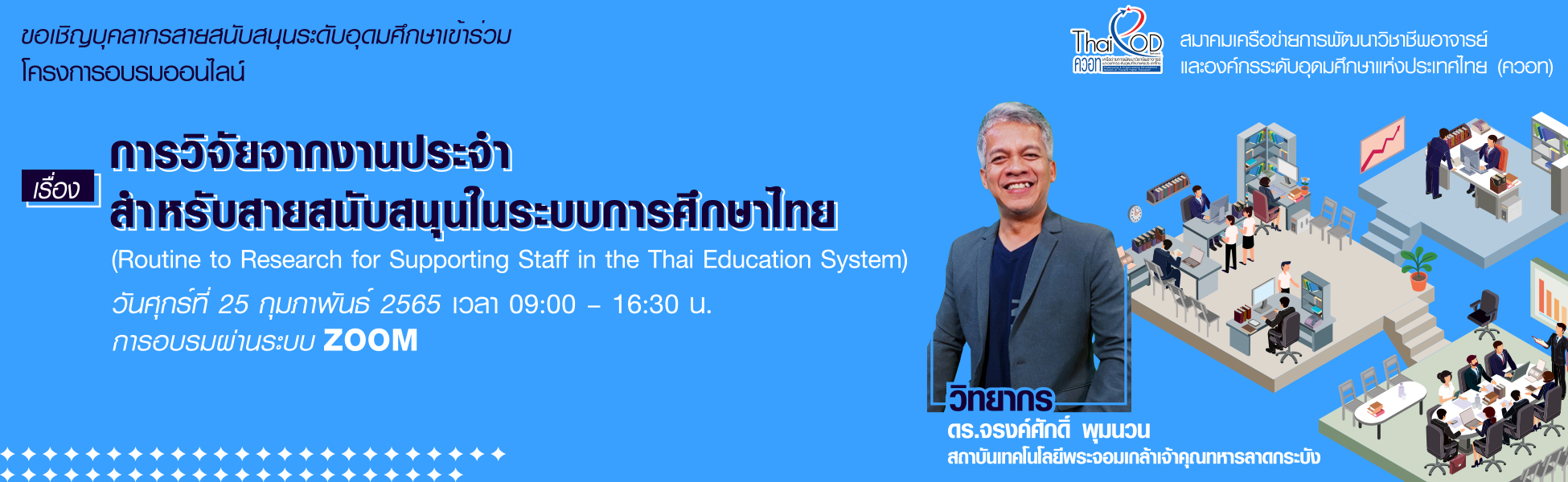 โครงการอบรมออนไลน์ เรื่อง การวิจัยจากงานประจำ สำหรับสายสนับสนุนในระบบการศึกษาไทย (Routine to Research for Supporting Staff in the Thai Education System)