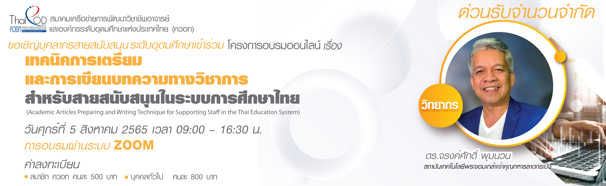โครงการอบรมออนไลน์ เรื่อง เทคนิคการเตรียมและการเขียนบทความทางวิชาการ สำหรับสายสนับสนุนในระบบการศึกษาไทย (Academic Articles Preparing and Writing Technique for Supporting Staff in the Thai Education System)