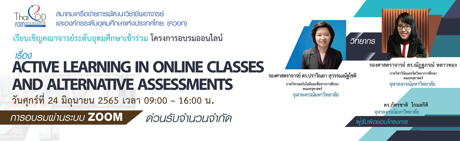 โครงการอบรมออนไลน์ เรื่อง Active Learning in Online Classes and Alternative Assessments
