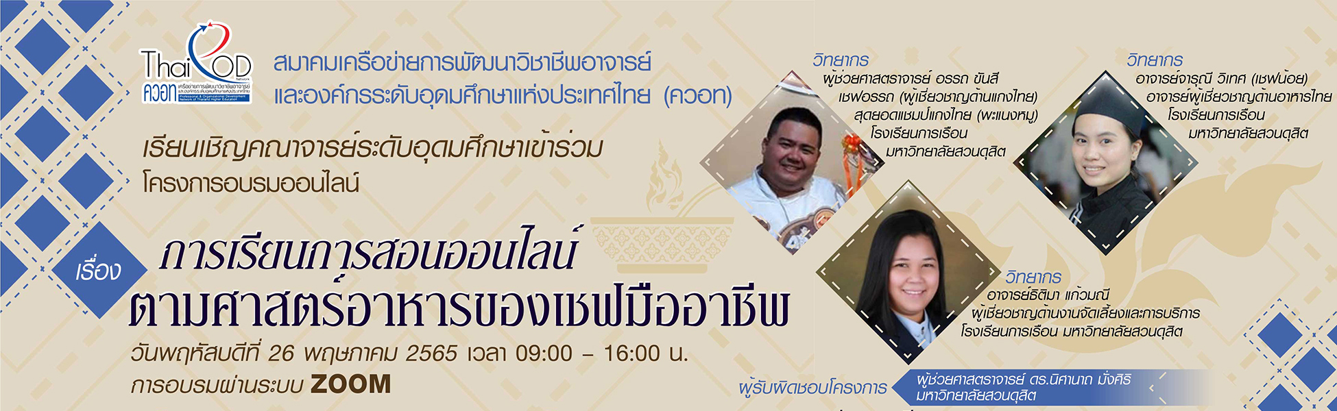 โครงการอบรมออนไลน์ เรื่อง การเรียนการสอนออนไลน์ ตามศาสตร์อาหารของเชฟมืออาชีพ