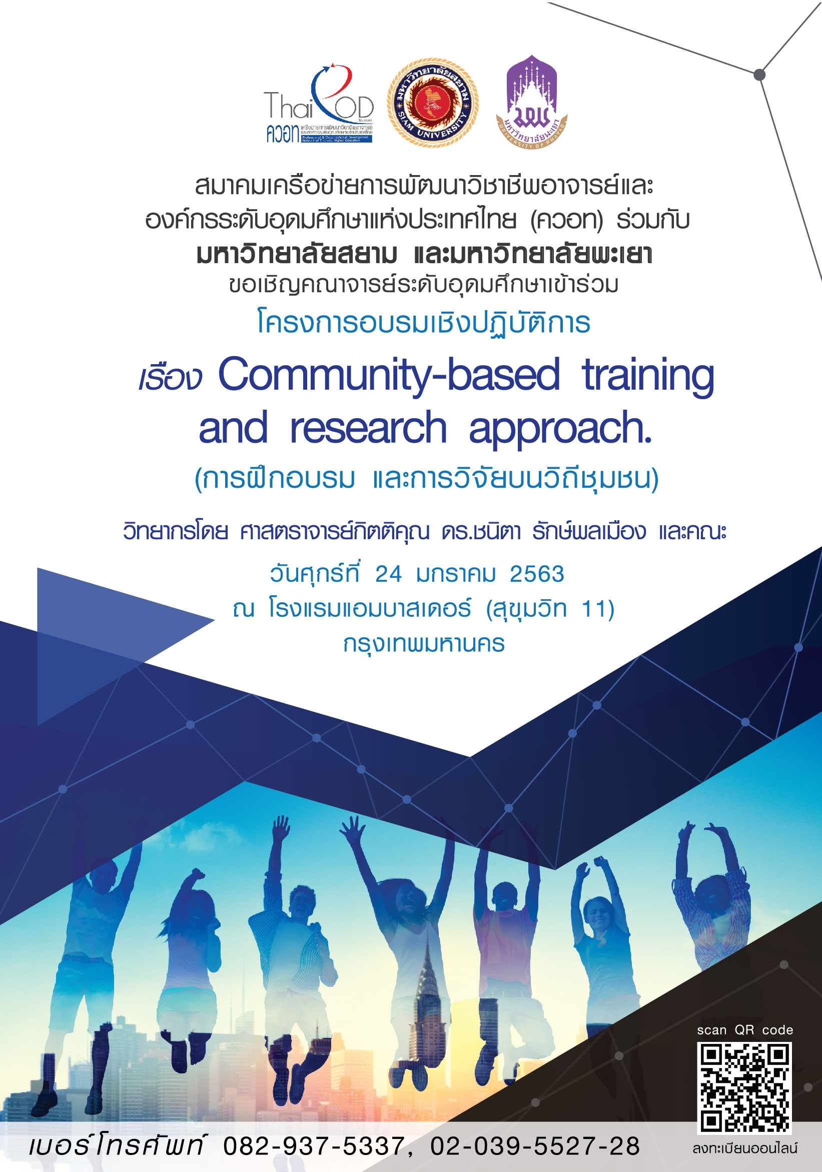 สมาคมเครือข่ายการพัฒนาวิชาชีพอาจารย์และองค์กรระดับอุดมศึกษาแห่งประเทศไทย (ควอท) จึงร่วมกับมหาวิทยาลัยสยามและมหาวิทยาลัยพะเยา จัดโครงการอบรมเชิงปฏิบัติการเรื่อง การฝึกอบรมและการวิจัยบนวิถีชุมชนขึ้น เพื่อเปิดโอกาสให้คณาจารย์ระดับอุดมศึกษาได้แลกเปลี่ยนเรียนรู้การฝึกอบรมและ การวิจัยบนวิถีชุมชน เพื่อนำไปใช้กับการเรียนการสอนในรายวิชาและพัฒนาหลักสูตรให้เกิดผลสัมฤทธิ์ต่อไป