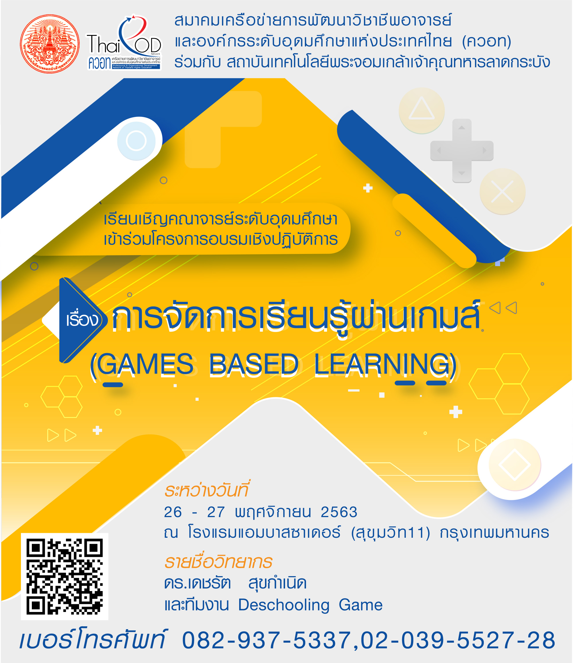 เพื่อเพิ่มประสิทธิภาพการเรียนการสอนในยุคที่ e-learning มีบทบาทต่อการเรียนรู้ สมาคมเครือข่ายการพัฒนาวิชาชีพอาจารย์และองค์กรระดับอุดมศึกษาแห่งประเทศไทย (ควอท) จึงได้จัดโครงการอบรม เชิงปฏิบัติการ เรื่อง การจัดการเรียนรู้ผ่านเกมส์ (Games.Based.Learning) เป็นการนำเกมส์มาใช้ใน การเรียนการสอน ซึ่งผลของการดำเนินโครงการจะเป็นประโยชน์โดยตรงกับครูผู้สอนในการพัฒนาการสอนด้วยการใช้เกมส์ ผู้เรียนสามารถเรียนรู้ได้จากความผิดพลาดที่เกิดขึ้นในเกมส์ และสามารถนำไปปรับใช้ในชีวิตจริงได้อย่างเหมาะสม