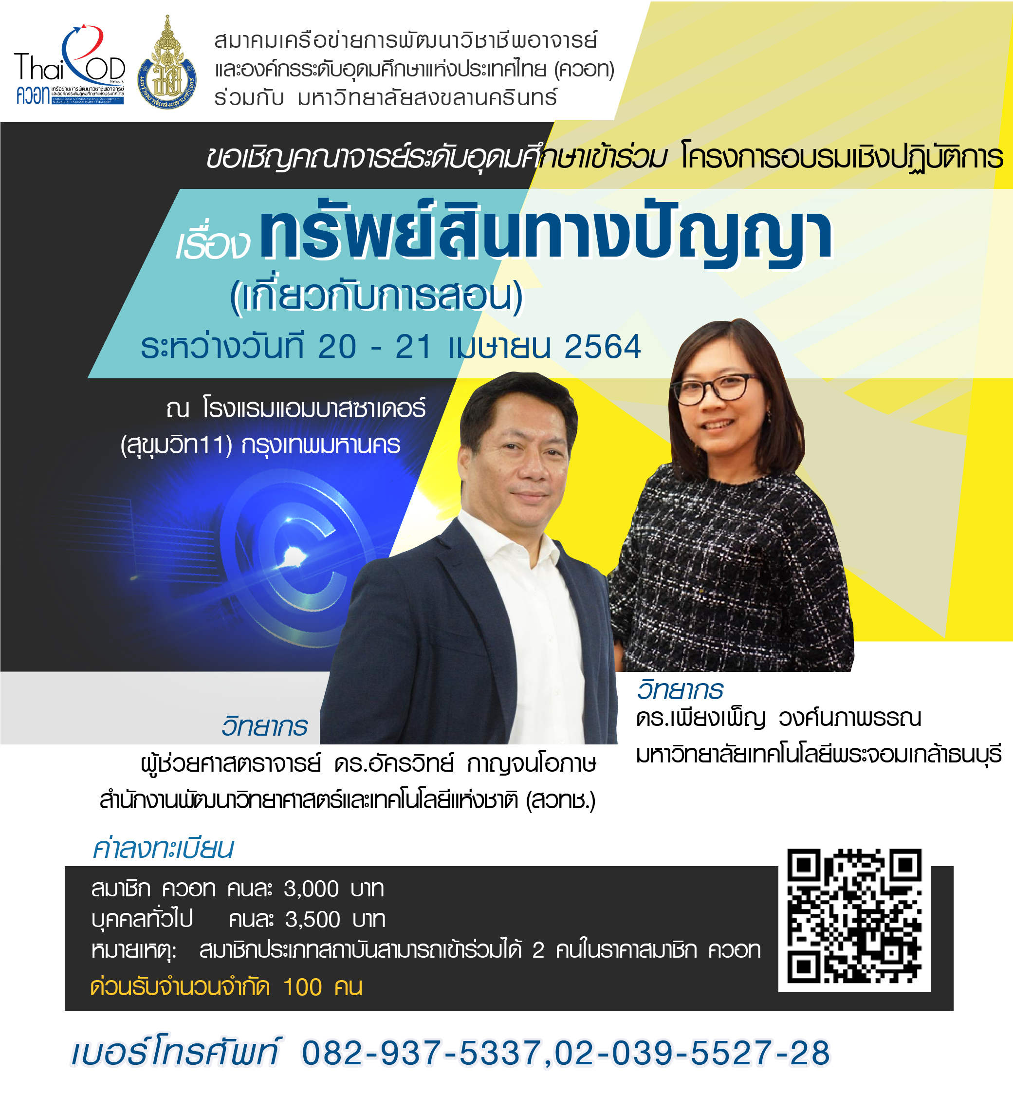 สมาคมเครือข่ายการพัฒนาวิชาชีพอาจารย์และองค์กรระดับอุดมศึกษาแห่งประเทศไทย (ควอท) ร่วมกับ มหาวิทยาลัยสงขลานครินทร์