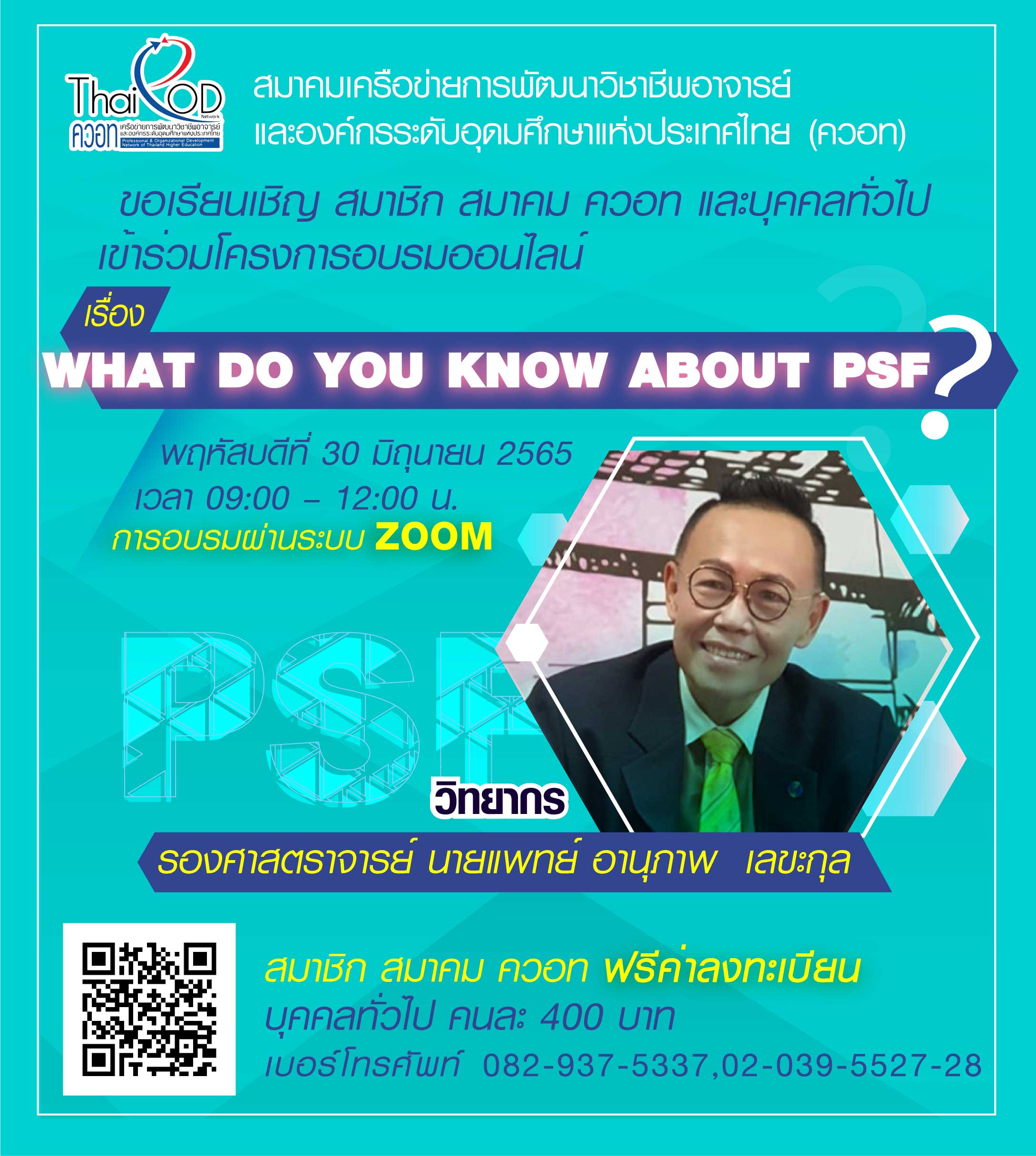 วันพฤหัสบดีที่ 30 มิถุนายน 2565 เวลา 09:00 – 12:00 น. (การอบรมออนไลน์ผ่านระบบ Zoom)