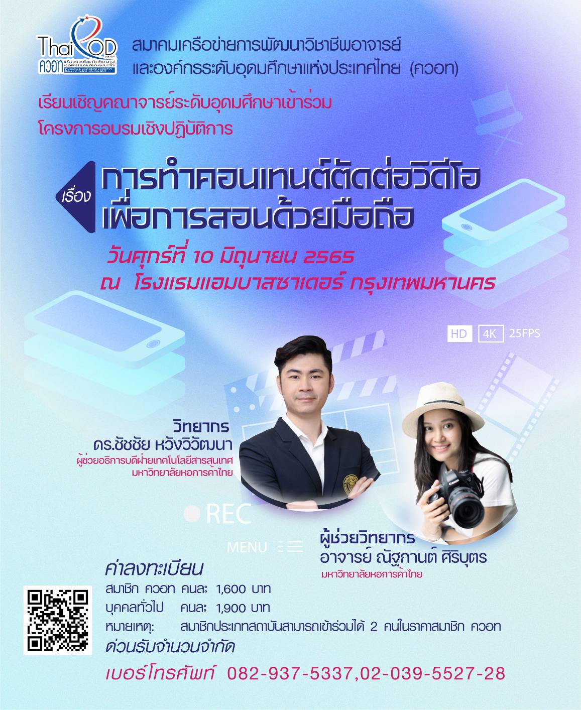 เพื่อเตรียมความพร้อมผู้เข้าอบรมให้สามารถนำเนื้อหา ความรู้ต่าง ๆ และนำประสบการณ์จากการสอนและเรียนรู้จากแหล่งต่าง ๆ มาจัดทำเนื้อหาเป็นวีดีโอด้วยการใช้โทรศัพท์มือถือ ทางสมาคมเครือข่ายพัฒนาวิชาชีพอาจารย์และองค์กรระดับอุดมศึกษาแห่งประเทศไทย (ควอท) จึงได้จัดโครงการอบรมเชิงปฏิบัติการ เรื่อง การทำคอนเทนต์ตัดต่อวิดีโอเพื่อการสอนด้วยมือถือ เพื่อสนับสนุนให้คณาจารย์ผู้สอนสามารถสร้างเนื้อหาต่าง ๆ ด้วยวีดีโอและนำไปประยุกต์ใช้ให้เกิดประโยชน์ทั้งในด้านการเรียนการสอน การพัฒนาการเรียนรู้และเข้าถึงสื่อการสอนของนักศึกษา รวมทั้งประโยชน์ในด้านอื่น ๆ ที่เกี่ยวข้อง