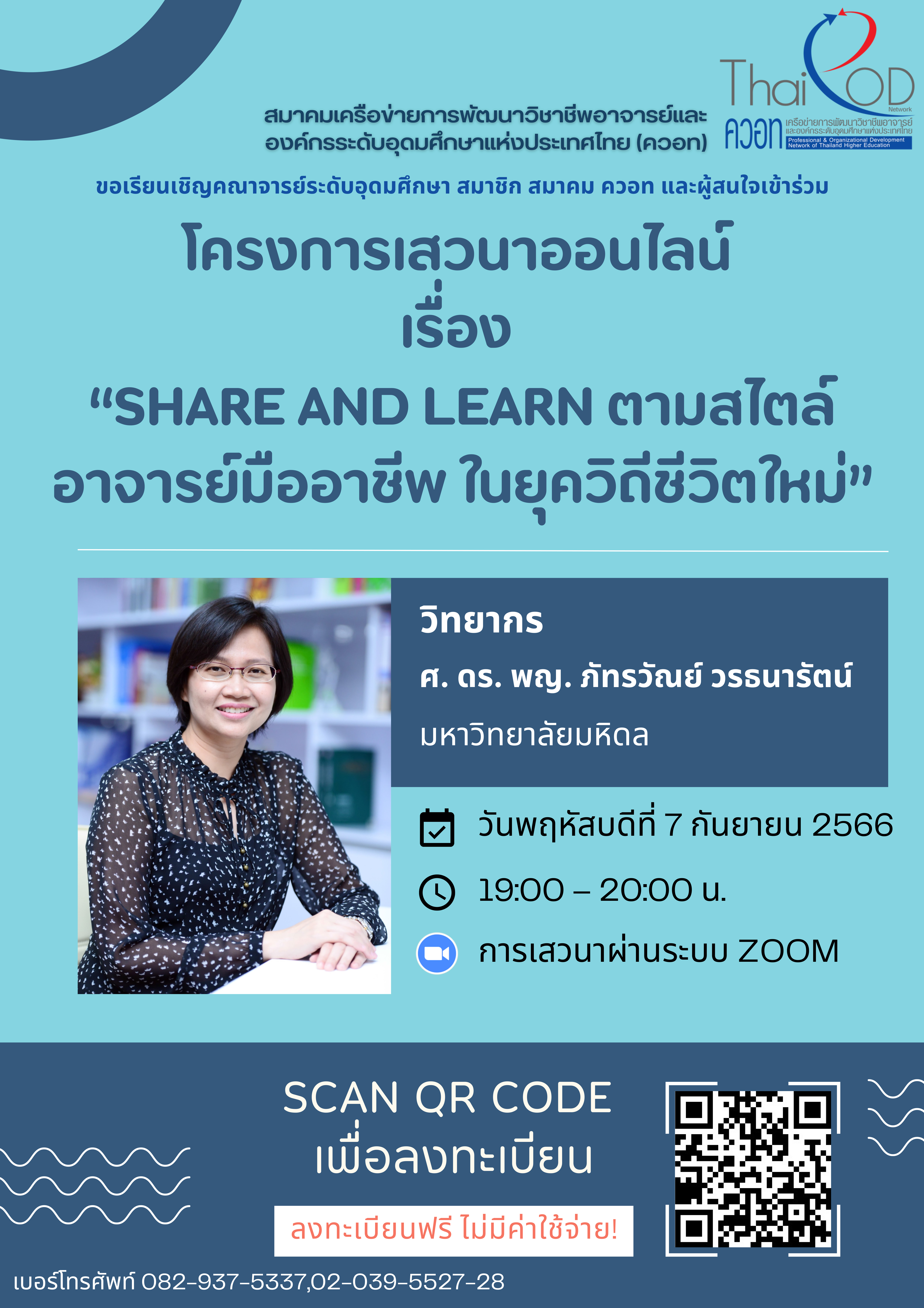 วันพฤหัสบดีที่ 7 กันยายน 2566 เวลา 19:00 – 20:00 น. (การเสวนาผ่านระบบ Zoom)