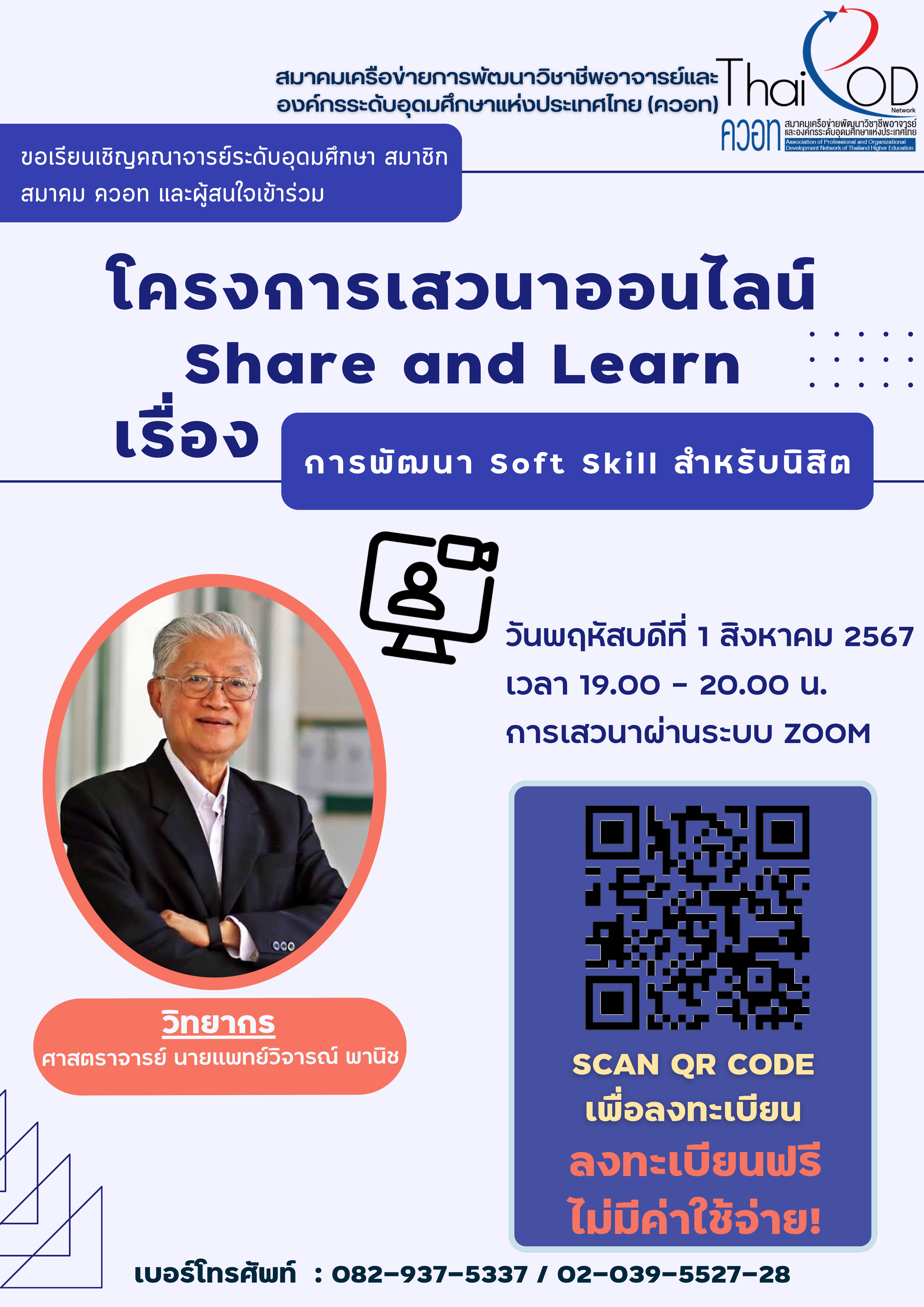 วันพฤหัสบดีที่ 1 สิงหาคม 2567 เวลา 19:00 – 20:00 น. (การเสวนาผ่านระบบ Zoom)