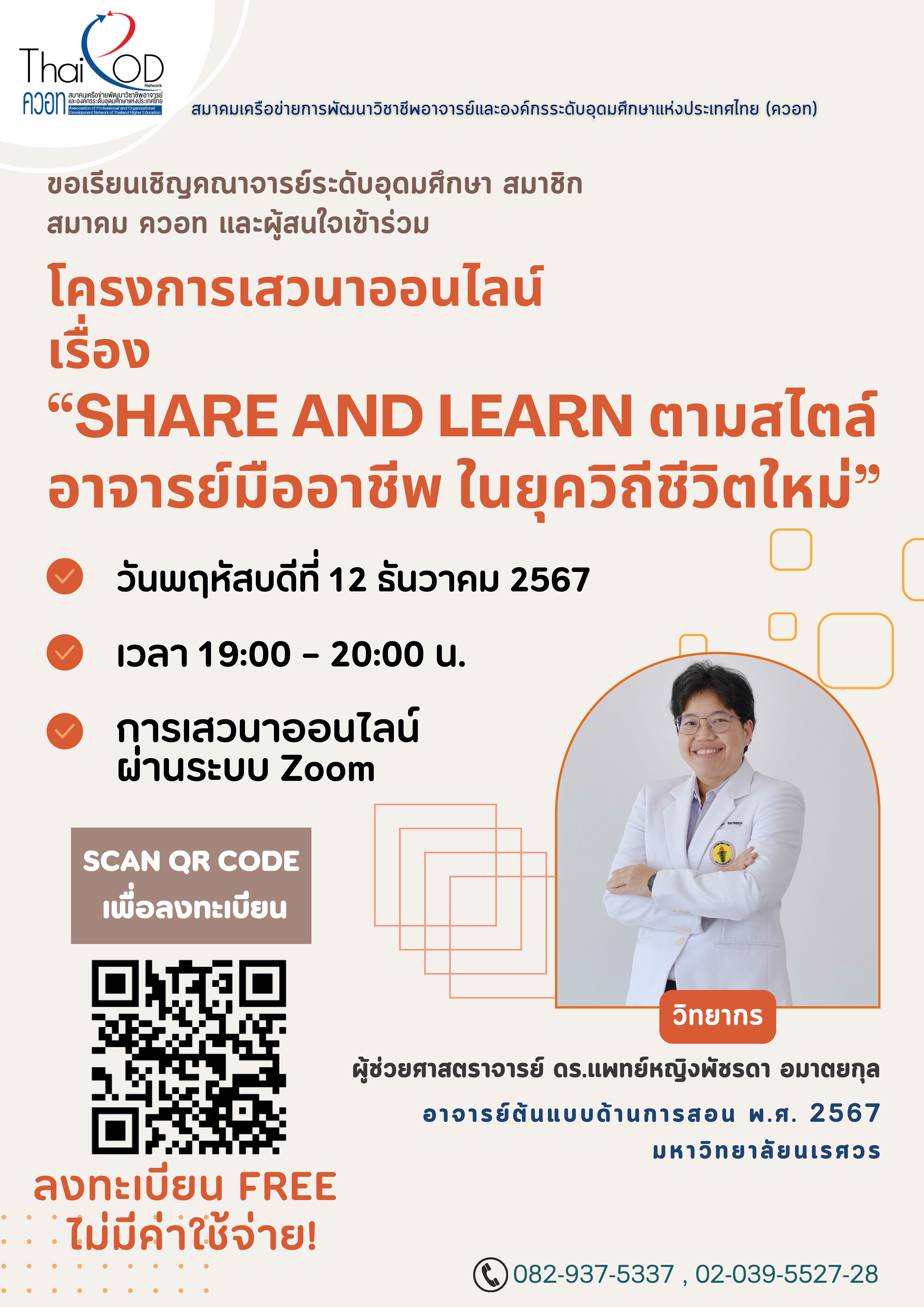 คณะกรรมการบริหาร สมาคม ควอท ได้มองเห็นถึงความสำคัญในการเปลี่ยนแปลงอย่างรวดเร็ว ในครั้งนี้ อีกทั้งในช่วงเวลาที่ผ่านมาระยะเวลาหลายเดือน มีหลายมหาวิทยาลัยได้มีการทดลองปรับใช้รูปแบบการสอน การจัดกิจกรรม การวัดผลแบบต่าง ๆ เพื่อให้เกิดประสิทธิภาพสูงสุด และเกิดผลต่อนิสิตนักศึกษา ในสถาบันให้เกิดการเรียนรู้ที่เทียบเท่าการจัดการเรียนการสอนแบบปกติแบบเดิม จึงเสนอให้มีการจัดเสวนา ในการแลกเปลี่ยนเรียนรู้ เป็นการถอดบทเรียน ในเรื่องการจัดการเรียนการสอนในทุกมิติในยุคชีวิตวิถีใหม่นี้ และเพื่อรวบรวม นำเสนอมุมมองให้เป็นประโยชน์ต่อมหาวิทยาลัยต่าง ๆ อีกทั้งยังเป็นการแลกเปลี่ยนเรียนรู้ร่วมกัน เพื่อจะให้เกิดชุมชนแห่งการเรียนรู้ของสมาชิกสมาคมฯ อย่างต่อเนื่อง จึงจัดกิจกรรมประชุมออนไลน์ ในหัวข้อ “Share and Learn ตามสไตล์อาจารย์มืออาชีพ ในยุควิถีชีวิตใหม่”