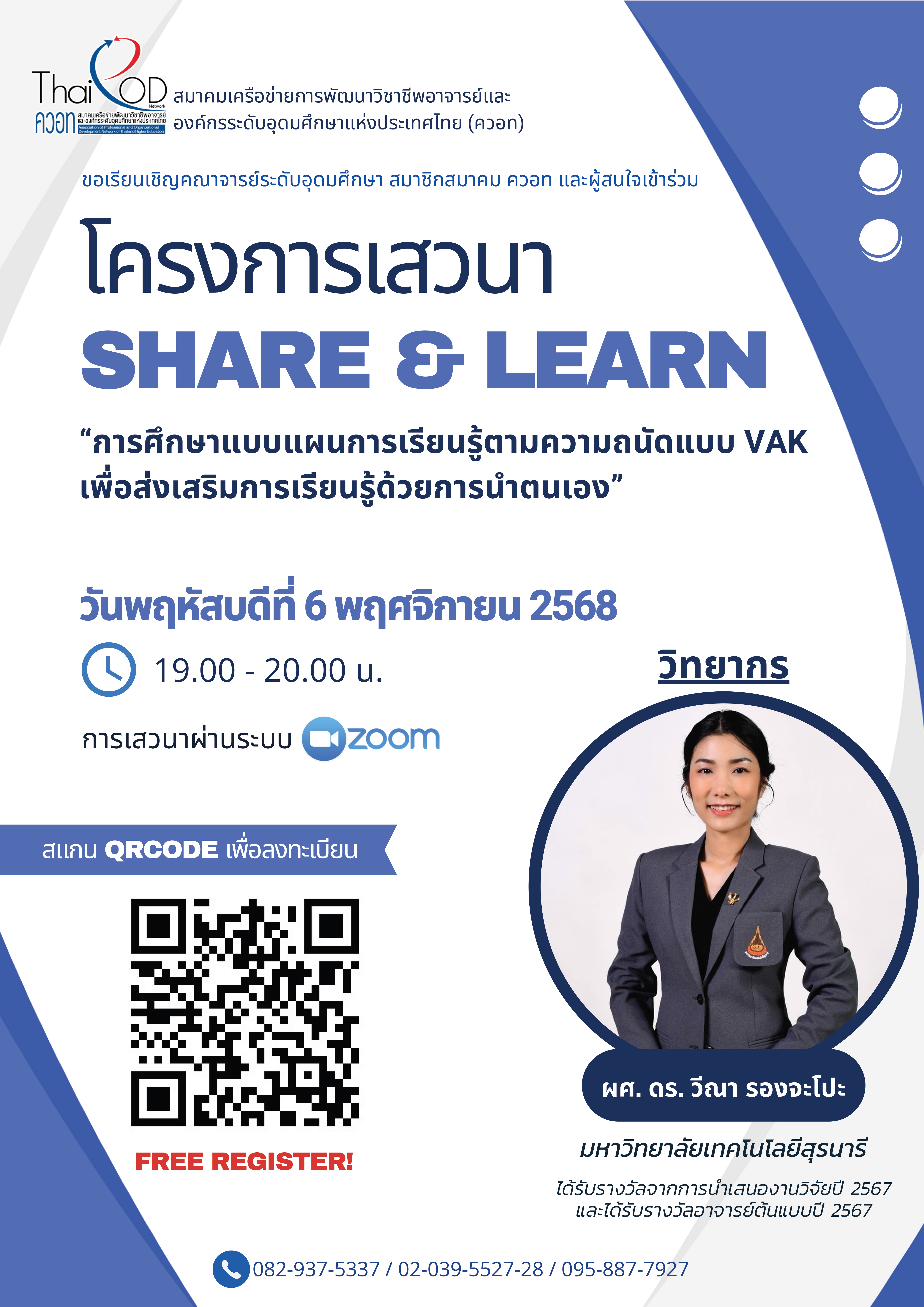 วันพฤหัสบดีที่ 6 พฤศจิกายน 2568 เวลา 19:00 – 20:00 น. (การเสวนาออนไลน์ผ่านระบบ Zoom)