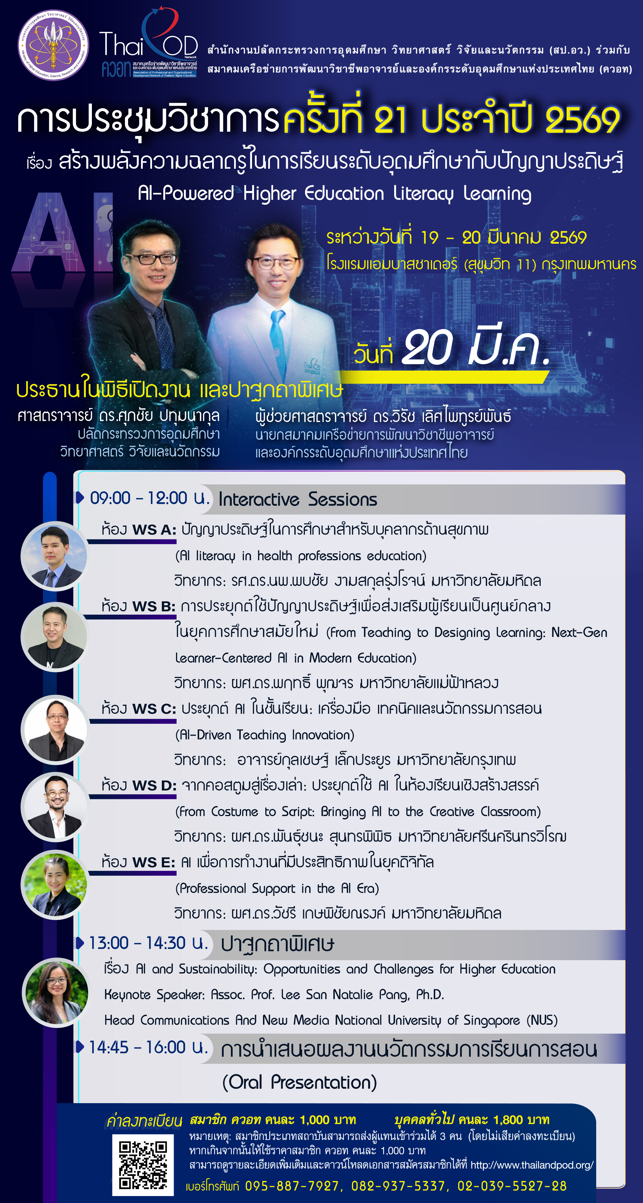 การประชุมวิชาการ สำนักงานปลัดกระทรวงอุดมศึกษา วิทยาศาสตร์ วิจัยและนวัตกรรม (สป.อว.) ร่วมกับ สมาคมเครือข่ายการพัฒนาวิชาชีพอาจารย์ และองค์กรระดับอุดมศึกษาแห่งประเทศไทย (ควอท) ครั้งที่ 21 ประจำปี 2569