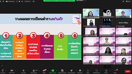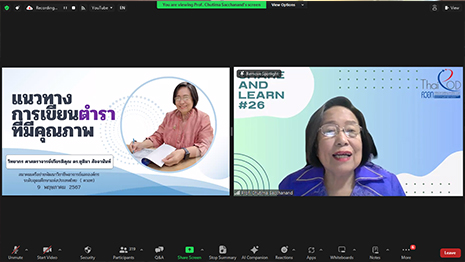 ได้จัดโครงการเสวนาออนไลน์ Share and Learn เรื่อง “แนวทางการเขียนตำราที่มีคุณภาพ” การเสวนาออนไลน์ผ่านระบบ Zoom โดยได้รับเกียรติจาก ศาสตราจารย์เกียรติคุณ ดร.ชุติมา สัจจานันท์ มหาวิทยาลัยสุโขทัยธรรมาธิราช เป็นวิทยากรในการจัดเสวนาในครั้งนี้