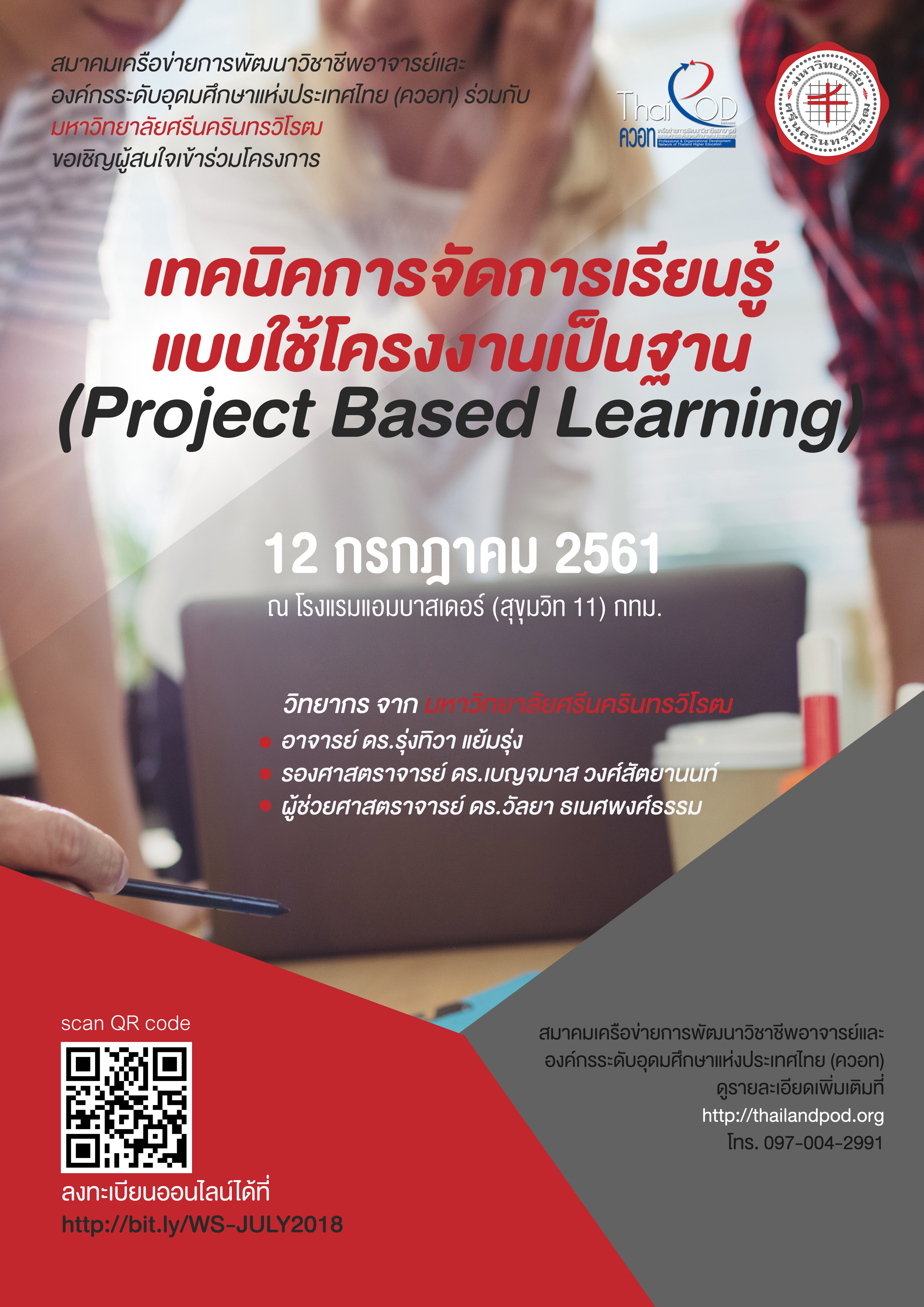 สมาคมเครือข่ายการพัฒนาวิชาชีพอาจารย์และองค์กรระดับอุดมศึกษาแห่งประเทศไทย (ควอท) ร่วมกับ มหาวิทยาลัยศรีนครินทรวิโรฒค่าลงทะเบียนจากผู้เข้ารับการอบรม