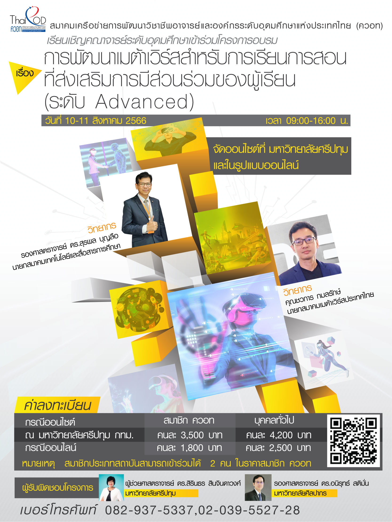 ดังนั้น สมาคมเครือข่ายการพัฒนาวิชาชีพอาจารย์และองค์กรระดับอุดมศึกษาแห่งประเทศไทย (ควอท) จึงกำหนดจัดโครงการอบรม เรื่อง การพัฒนาเมต้าเวิร์สสำหรับการเรียนการสอนที่ส่งเสริมการมีส่วนร่วมของผู้เรียน (ระดับ Advanced) เพื่อให้อาจารย์ในระดับอุดมศึกษา ได้นำเครื่องมือการจัดการห้องเรียนเสมือนจริง หรือ Metaverse ไปประยุกต์ใช้ในการจัดการเรียนการสอน และการพัฒนานักศึกษาได้อย่างมีประสิทธิภาพ