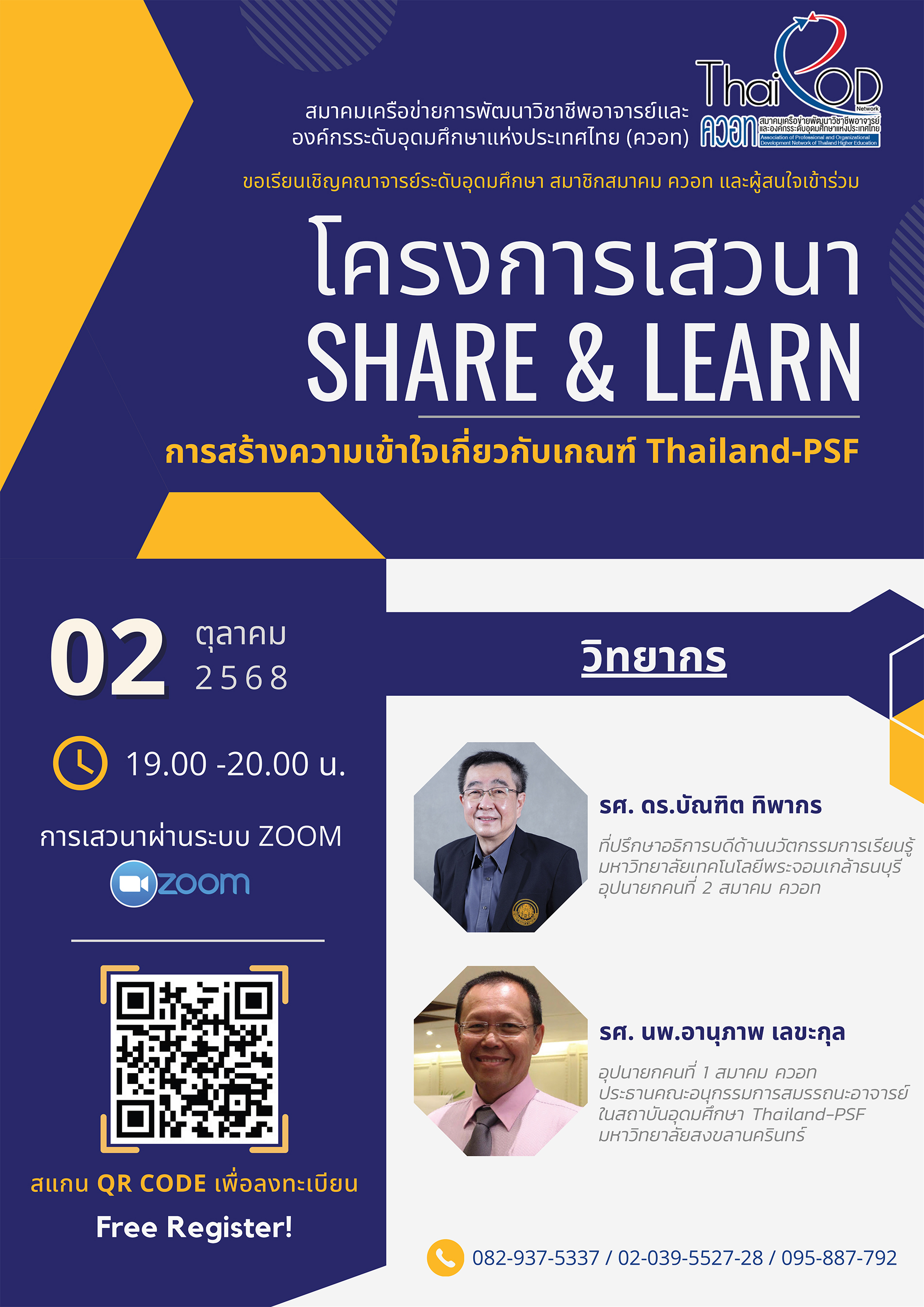 วันพฤหัสบดีที่ 2 ตุลาคม 2568 เวลา 19:00 – 20:00 น. (การเสวนาออนไลน์ผ่านระบบ Zoom)