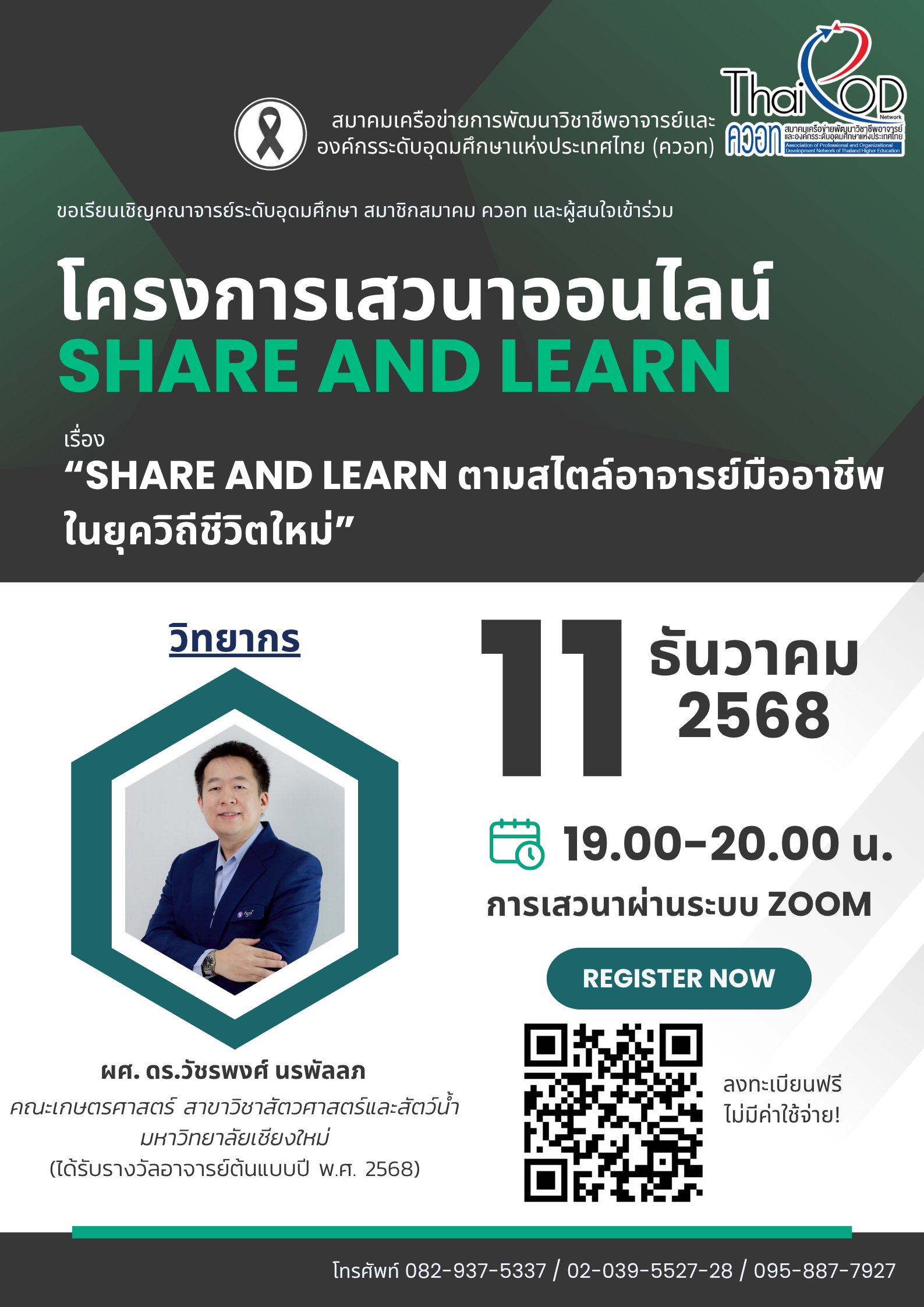 วันพฤหัสบดีที่ 11 ธันวาคม 2568 เวลา 19:00 – 20:00 น. (การเสวนาออนไลน์ผ่านระบบ Zoom)