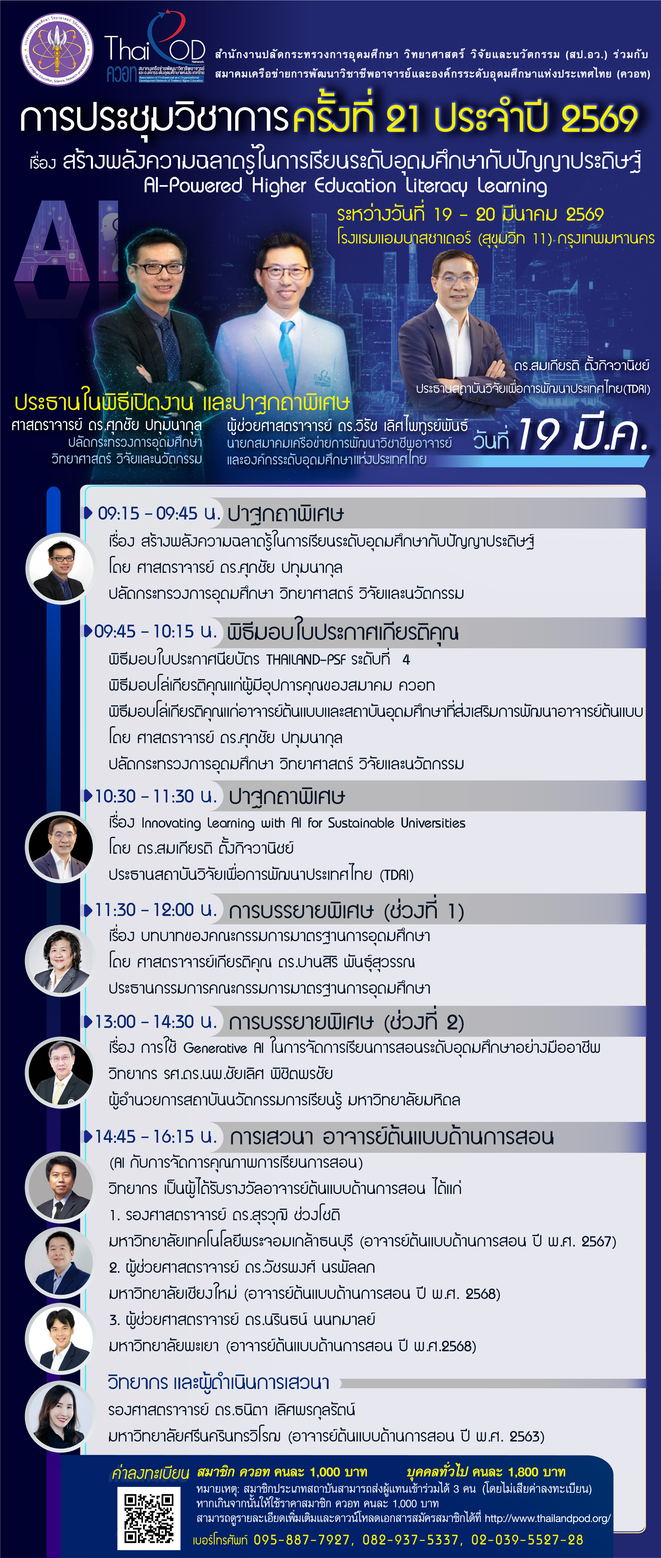 การประชุมวิชาการ สำนักงานปลัดกระทรวงอุดมศึกษา วิทยาศาสตร์ วิจัยและนวัตกรรม (สป.อว.) ร่วมกับ สมาคมเครือข่ายการพัฒนาวิชาชีพอาจารย์ และองค์กรระดับอุดมศึกษาแห่งประเทศไทย (ควอท) ครั้งที่ 21 ประจำปี 2569
